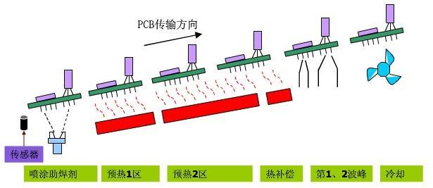 組件在由鏈式傳送帶傳送的過程中,先在焊機預熱(rè)區進行預熱(組件預熱及其所要達到的溫度依然由預定的溫度曲線控製)。